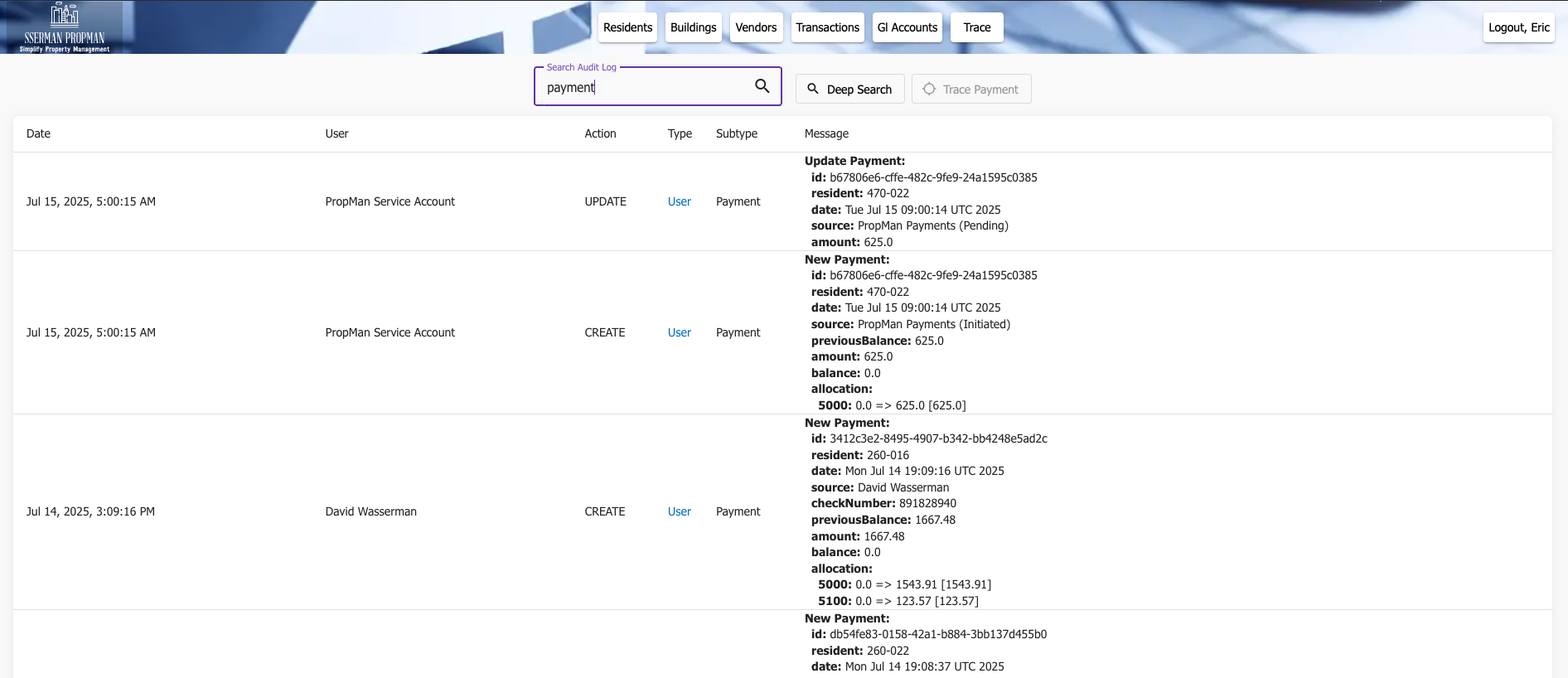 If a Resident Payment is entered into the system and allocated to the wrong account, the Trace page can be used to find the Payment and make appropriate corrections.