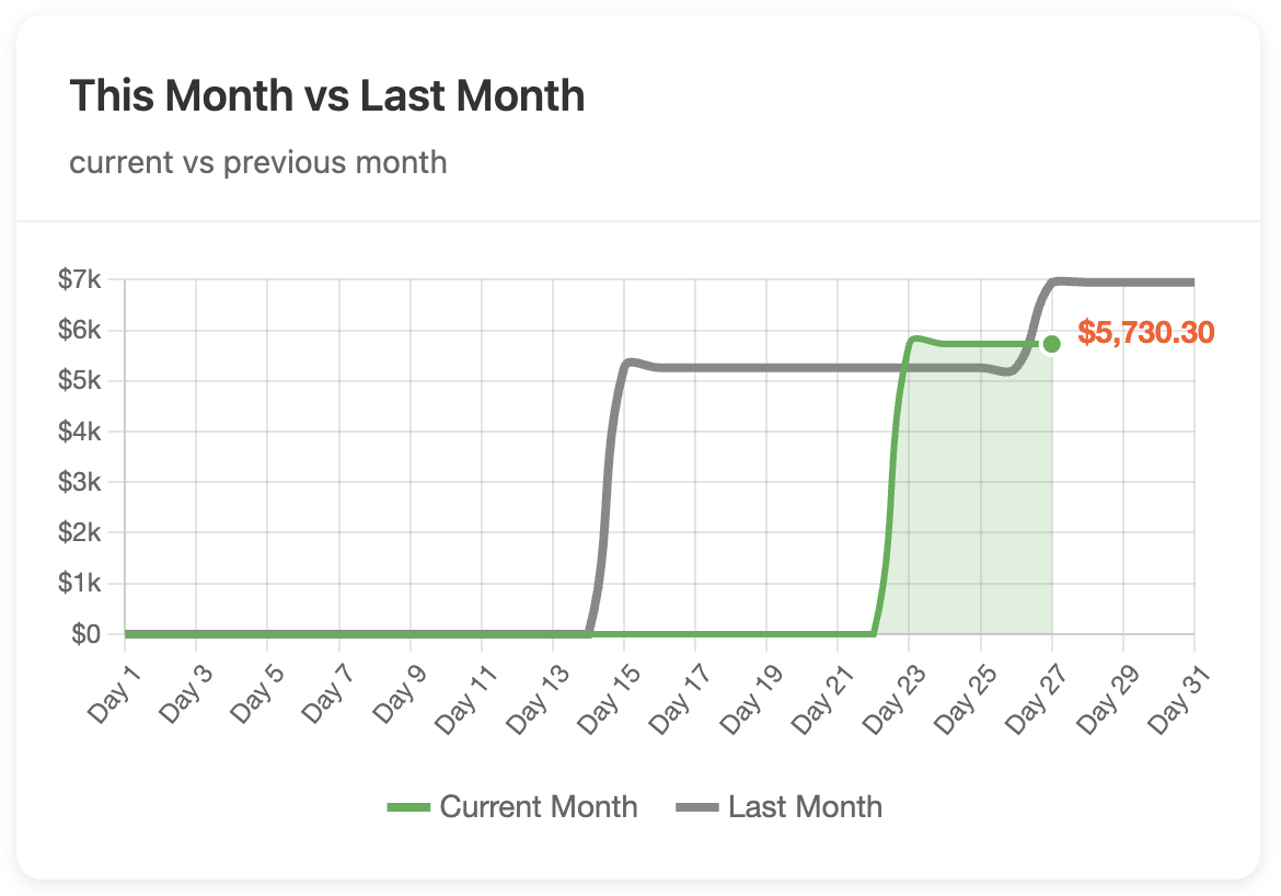 This chart shows the Vendor spend this month-to-date as compared to the previous month.