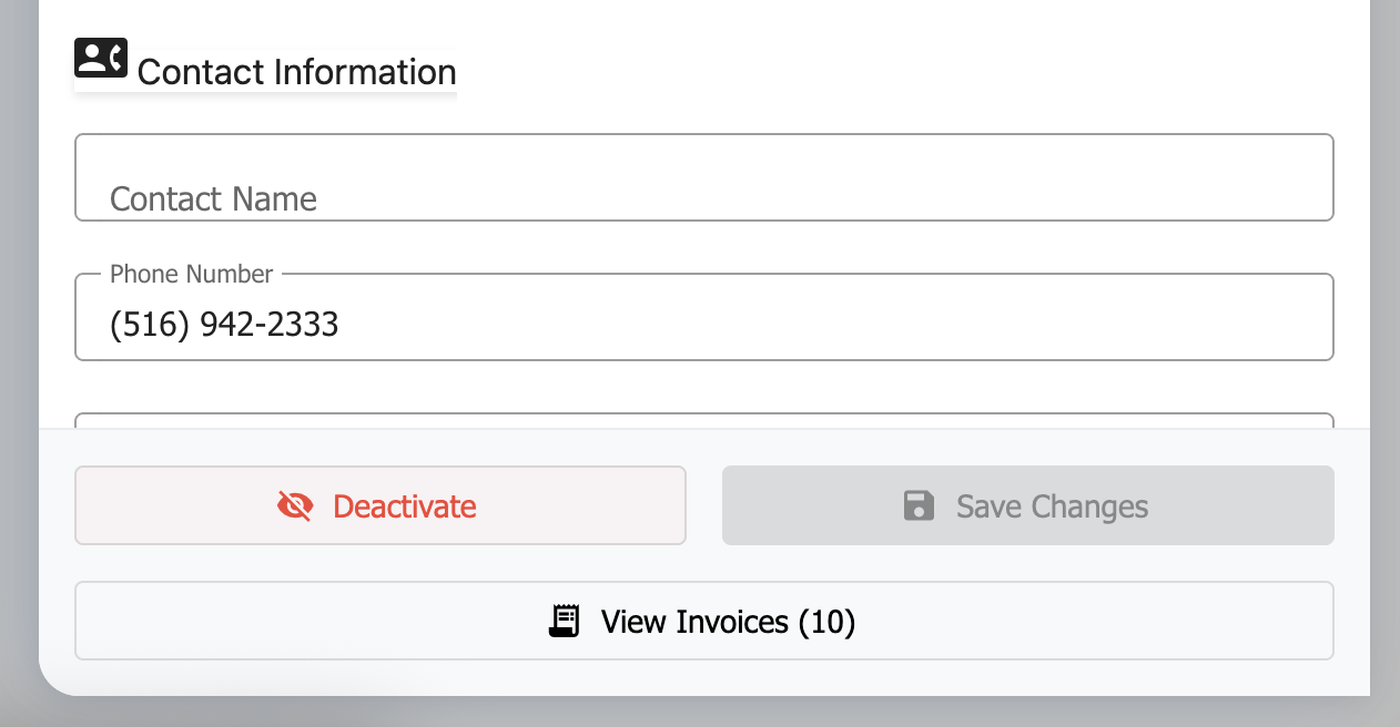 Vendors can be deactivated from the Vendor Directory by clicking the Deactivate button